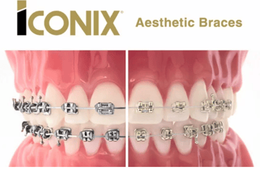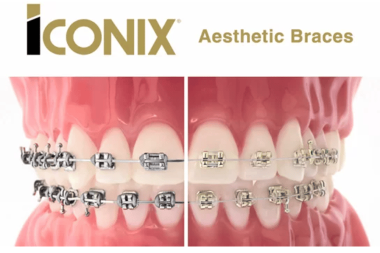 Alternatywą dla klasycznego metalowego aparatu jest aparat estetyczny Iconix – w kolorze białego złota. Dzięki opatentowanemu procesowi implantacji jonów zamki pozostają złote w czasie trwania leczenia, a kolor się nie łuszczy ani nie wyciera. Złoty odcień aparatu komponuje się z powierzchnią szkliwa zdecydowanie bardziej niż typowe zamki o metalicznym odcieniu. Aparat Iconix cechuje się bardzo dobrymi właściwościami mechanicznymi, a praca na nim jest skuteczna i wygodna. W połączeniu ze złotymi lub perłowymi ligaturami Iconix zapewnia wygodną i estetyczną alternatywę dla klasycznego aparatu.
