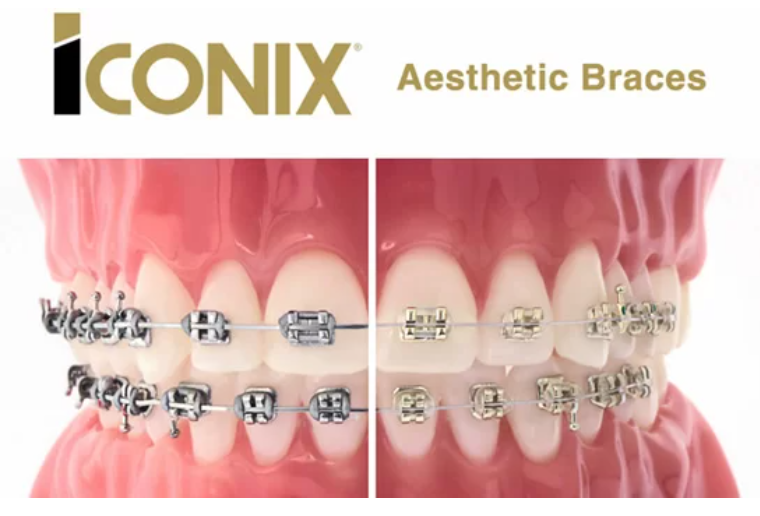 Alternatywą dla klasycznego metalowego aparatu jest aparat estetyczny Iconix – w kolorze białego złota. Dzięki opatentowanemu procesowi implantacji jonów zamki pozostają złote w czasie trwania leczenia, a kolor się nie łuszczy ani nie wyciera. Złoty odcień aparatu komponuje się z powierzchnią szkliwa zdecydowanie bardziej niż typowe zamki o metalicznym odcieniu. Aparat Iconix cechuje się bardzo dobrymi właściwościami mechanicznymi, a praca na nim jest skuteczna i wygodna. W połączeniu ze złotymi lub perłowymi ligaturami Iconix zapewnia wygodną i estetyczną alternatywę dla klasycznego aparatu.